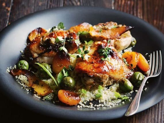 Tender chicken cooked with whole apricots, preserved lemon, and gentle spices for a naturally sweet, tangy flavour. Served with fregola pasta tossed with toasted almonds. A simple, warming dish with a hint of something special.