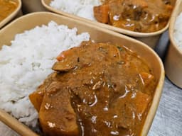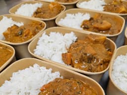 Slow cooked lamb Rogan Josh, served with steamed rice.