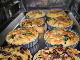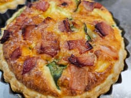 Freshly baked individual quiche.