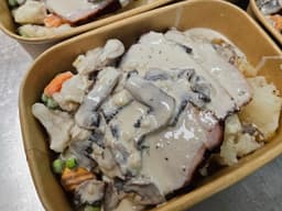 Worcestershire sauce, Beef, Mushrooms, Dijon mustard Gluten free, Tomato paste, Seasoning (Soy), Sour cream (Milk), Beef stock powder GF (Wheat, Soy)