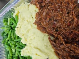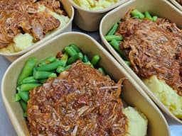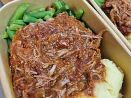 Brown sugar, Lamb, Tinned tomatoes, Onion, Carrots, Tomato paste, Mixed Italian herbs, Mixed fresh herbs, Green beans, Mashed potato, Garlic, Salt, Pepper, Beef stock powder GF (Wheat, Soy)