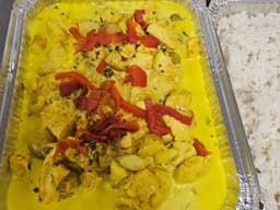 Chicken breast, Steamed rice, Cream (Milk), Potatoes, Rice long grain Coles, Mushrooms, Salt, Garlic, Lime juice, Ginger, Turmeric, Fresh coriander, Chilli flakes, Pepper