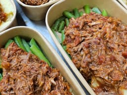 Lamb Leg roast, Pasta (Wheat), Tinned tomatoes, Frozen beans cross cut coles, Onion, Celery, Carrot, Garlic, Worcestershire sauce, Brown sugar, Beef stock powder GF (Wheat, Soy), Salt, Pepper