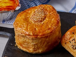 Chicken, Puff pastry (Wheat), Milk, Carrots, Butter (Milk), Cheese (Milk), Sweetcorn, Bread flour (Wheat), Sesame seed, Egg, Salt, Black pepper