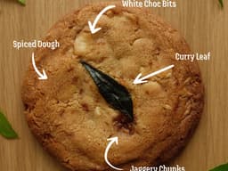 Spiced curry leaf, jaggery, white chocolate cookie