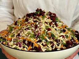 Broccoli, Carrots, White Cabbage, Red Cabbage, Cauliflower, Wine vinegar, Almond, slivered, Dried cranberries, Extra virgin olive oil, Kale, Mustard, Caster sugar, Garlic