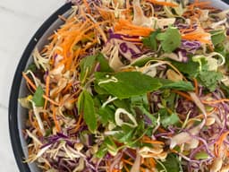 Delicious crispy fresh asian style slaw with a Nuoc Cham dressing on the side