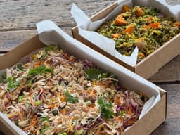 Red Cabbage, Carrots, Mint, Bean sprouts, Peanuts, Spring onion, Edamame beans (Soy), White Cabbage, GF Fish sauce, Lime juice, Red Onion, Celery, Ginger, Garlic, Rice wine vinegar, Sugar, Wood ear mushroom, Red chilli, Coriander