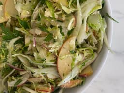 Shaved fennel, white cabbage, walnuts, red apple, & celery with a tangy vinaigrette.