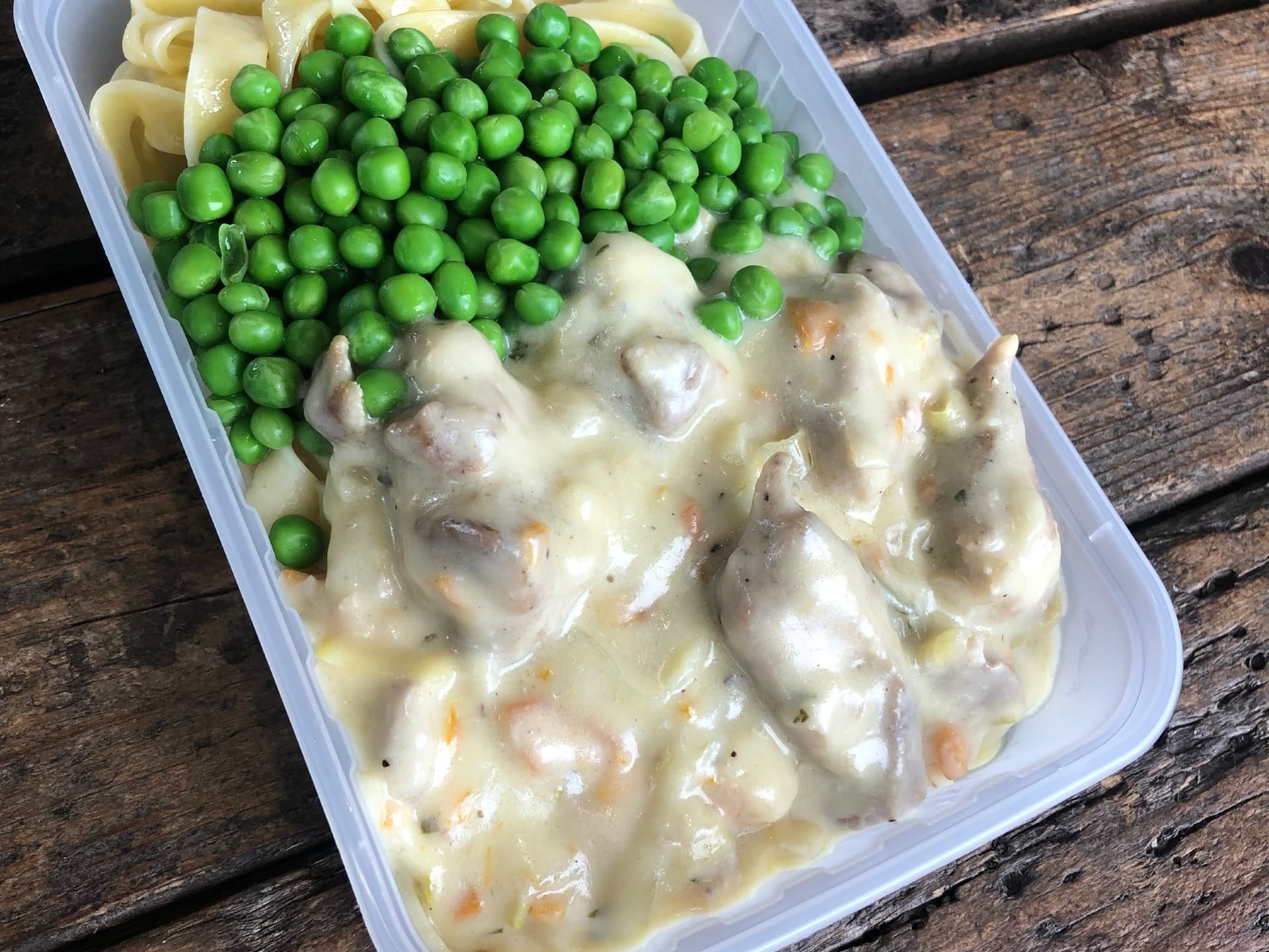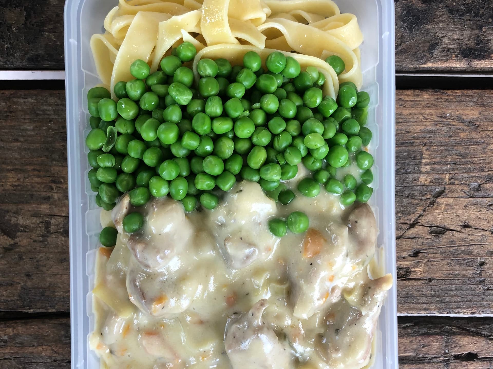 Comfort food at its best. The marriage of chicken, leek and vegetables served as a creamy ragu amongst Tagliatelle pasta and peas. FROZEN Serves 1