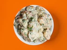 Potato, Mayonnaise (Egg), Cornichon, Dijon mustard, Capers, Wholegrain Mustard, Parsley, Dill