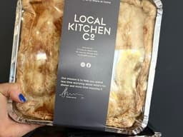 Chicken thighs, Puff pastry (Wheat), Cream (Milk), Chicken roasting juices (skimmed), Onion, Carrots, White wine, Leek, Butter (Milk), Flour (Wheat), Vegetable stock (GF), Chicken stock, Dijon mustard, Salt, Garlic, Thyme fresh, Pepper, Tarragon