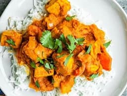 Vibrant Indian style curry with tender tofu and vast array of delicious vegetables served NO RICE. FROZEN. Serves 1 -2.