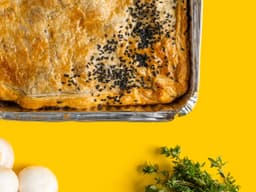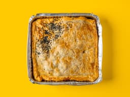 Beef & Mushroom Pie Mixture [Beef diced, Mushrooms, Onion, Red wine, Bacon, Carrots, Celery, Gravy granules (GF) (Milk, Soy, Sulphites), Tomato paste, Salt, Vegetable stock powder, Thyme fresh, Dijon mustard, Pepper], Puff pastry (Wheat)