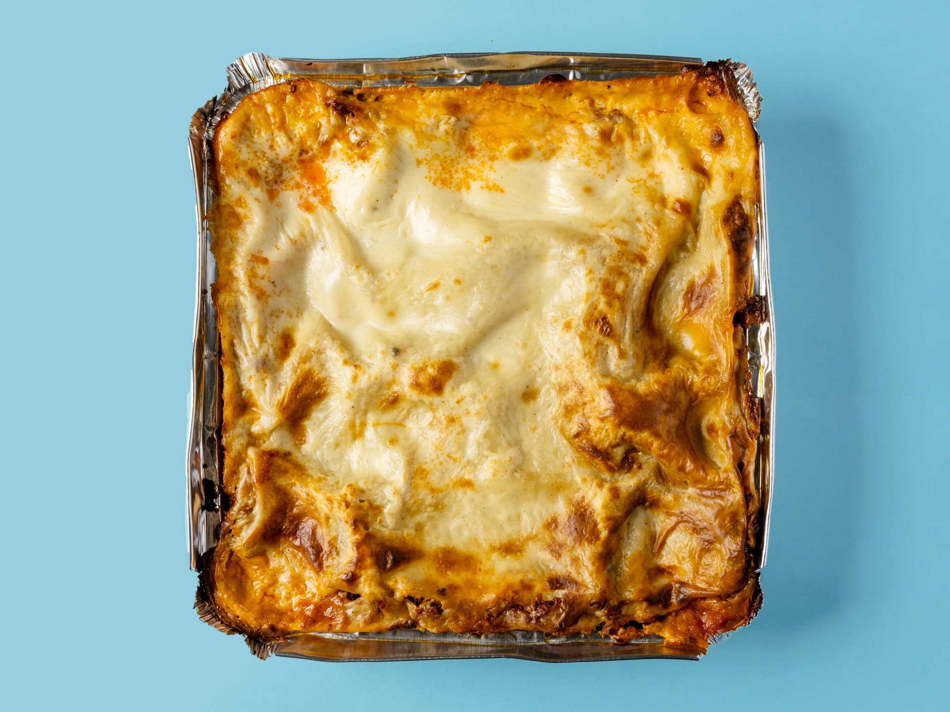Traditional house made beef bolognaise, layered with pasta,topped with cheesy bechamel sauce. A BEST SELLER. FROZEN. Served in a foil tay.