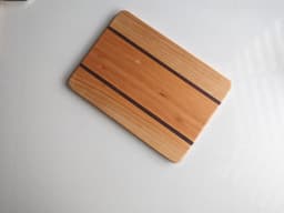 Handmade bread board, beautifully made by a local Victorian craftsman. Made from Cyprus with Purple Heart detail (Purple Heart is usually reserved for items such as jewellery boxes). Measuring 375mm (L) x 270mm (W) x 20mm (H). Sealed with grapeseed oil.