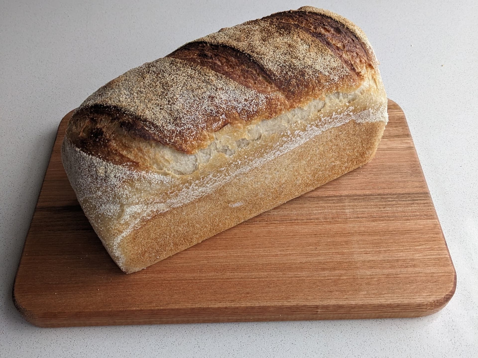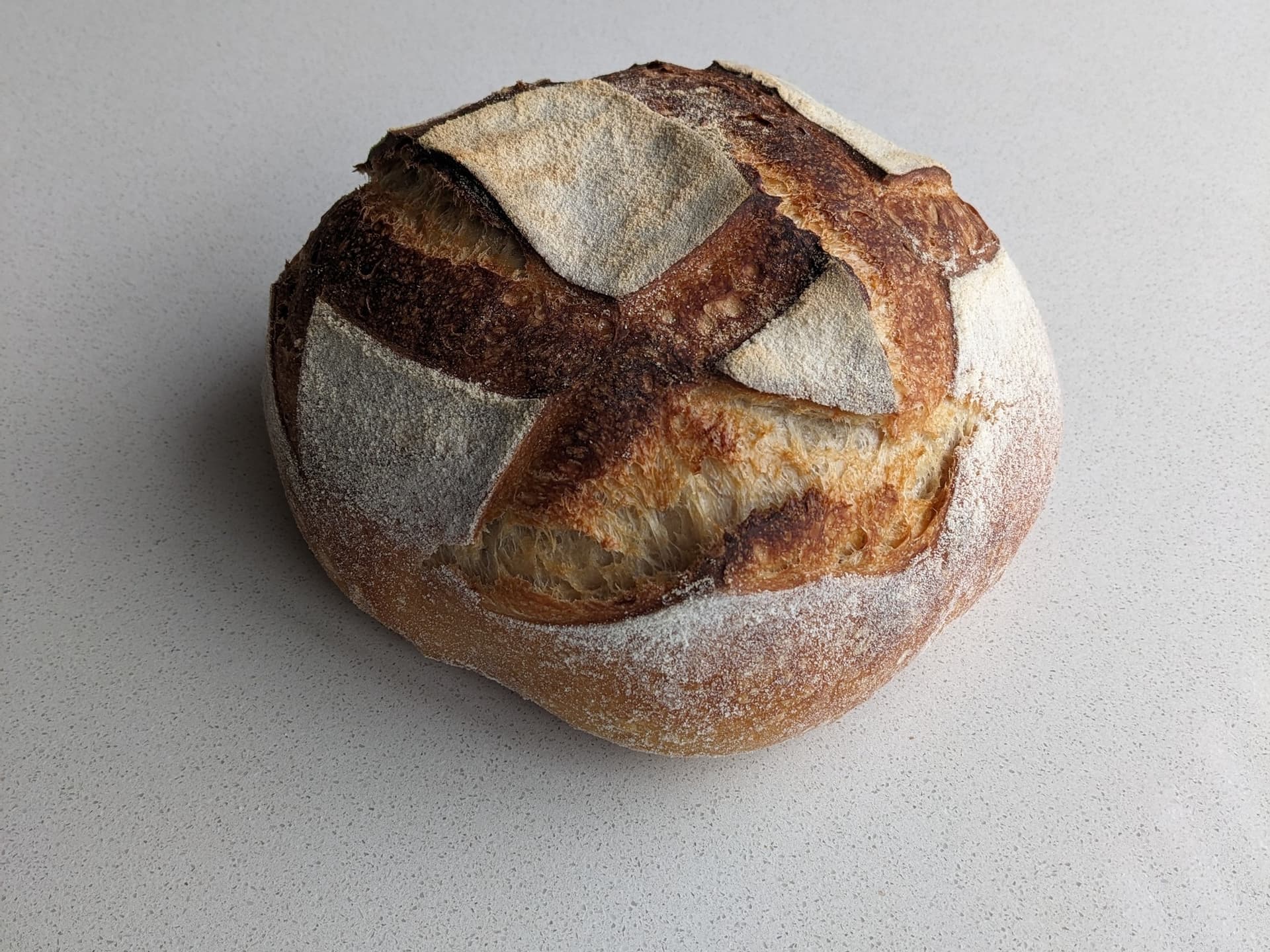 A round, free-form sourdough loaf made only of sustainable flour, water and salt.