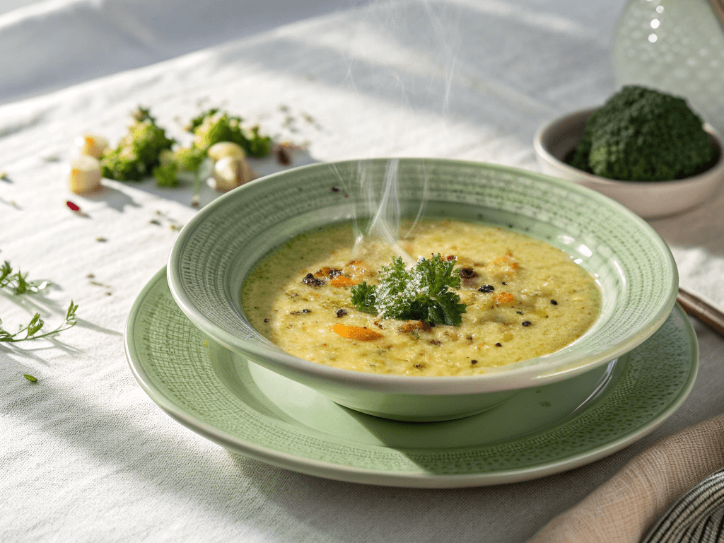 A creamy, comforting blend of tender broccoli and sweet leeks, simmered to perfection and finished with rich cheddar. Smooth, hearty, and gluten-free — the perfect cozy bowl for any season.