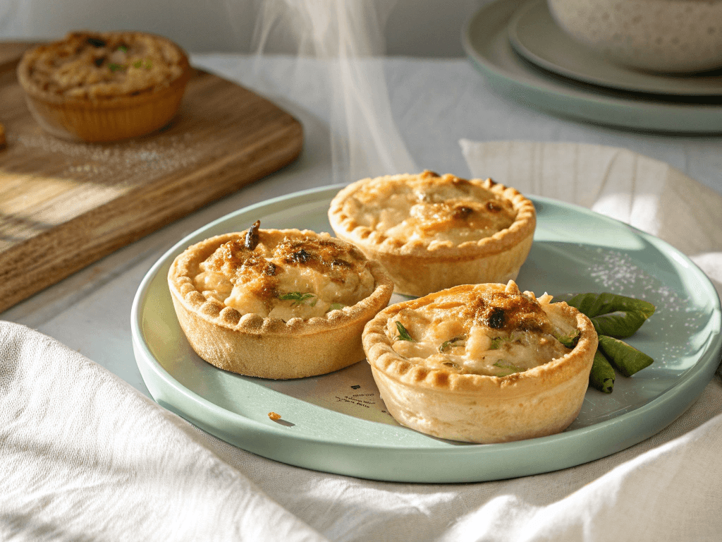 Golden, buttery pastry filled with tender chicken, sautéed leeks, and a creamy herb sauce. Our Chicken & Leek Open Pies are baked fresh for a comforting, hearty meal that’s perfect for lunch or dinner — simple, wholesome, and full of flavour.
