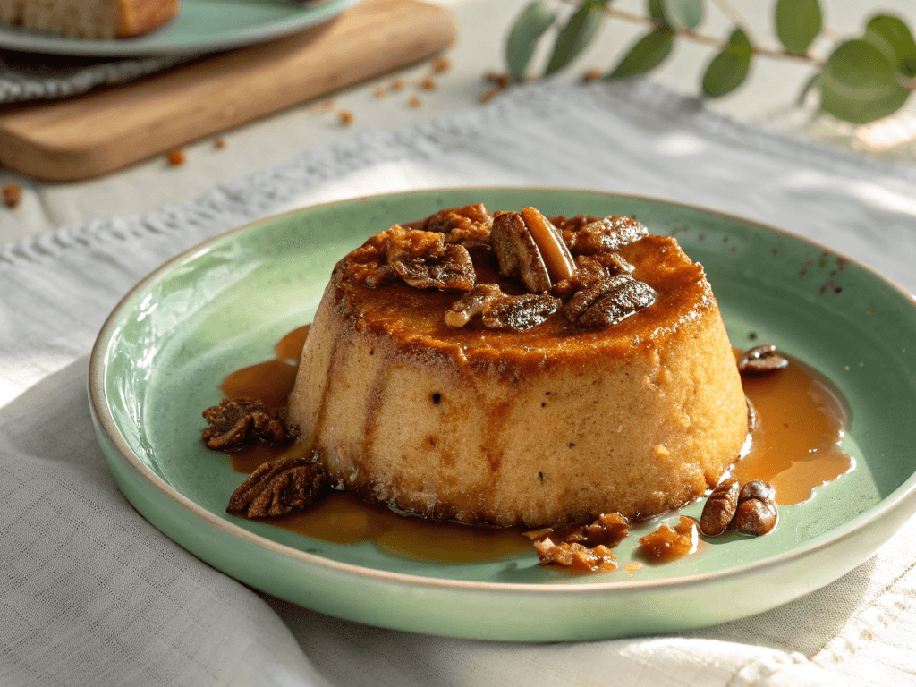 A rich, indulgent pudding cake infused with maple and a splash of whiskey, studded with crunchy pecans. Served with a warm caramel sauce that melts into every bite — sweet, nutty, and perfectly comforting.