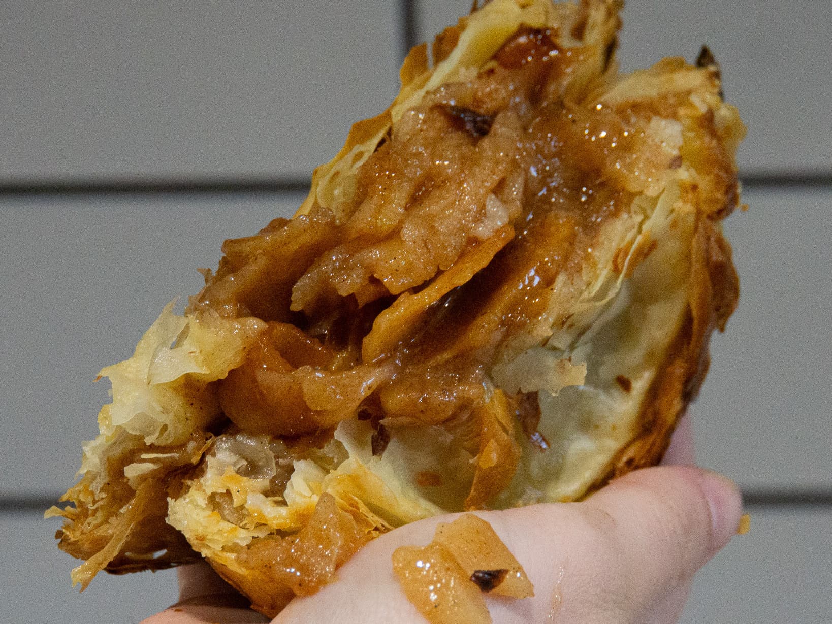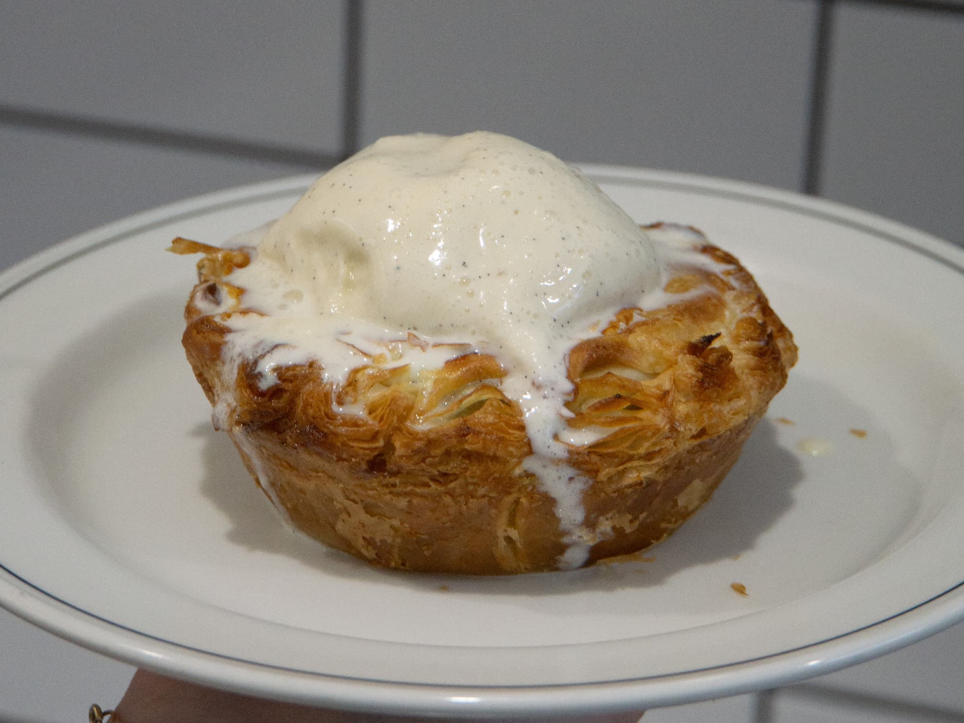 Gooey sticky date pudding, salted butterscotch sauce and vanilla creme pâtissière custard, all wrapped in a sweet buttery puff pastry pie! Sweet, decadent and made in house.