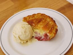 Tangy poached rhubarb paired with lush vanilla creme patisserie custard and packed in our flaky puff pastry. All made in house!