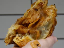Gooey sticky date pudding, salted butterscotch sauce and vanilla creme pâtissière custard, all wrapped in a sweet buttery puff pastry pie! Sweet, decadent and made in house.