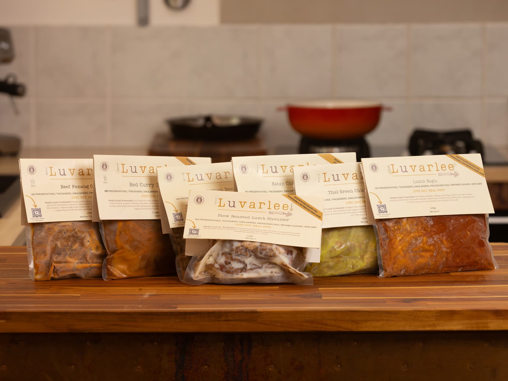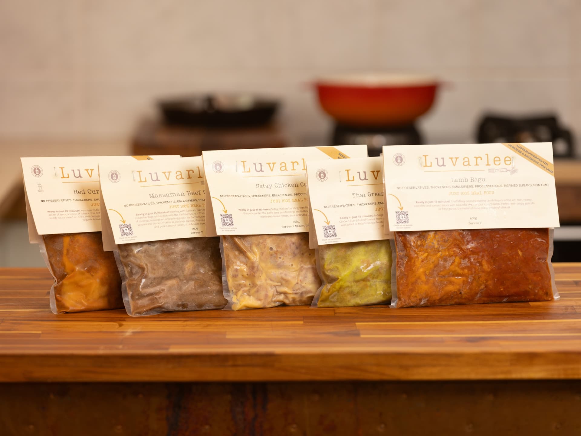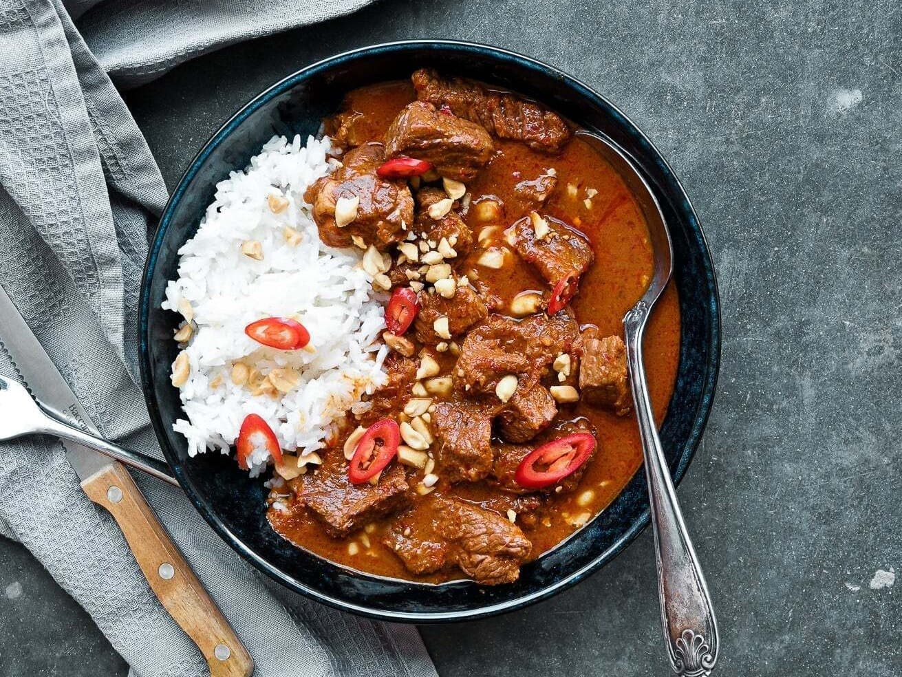 3/5 spicy. Chef Mikey’s personal favourite, and now a crowd pleaser at your house is our beef panang curry! Dreamy, melt-in-your-mouth beef is all but falling apart as it marinates in a punchy, zesty blend of chilli, lime and garlic with hidden herbs and lots of spices. Peanuts add a lush creaminess. Thick, salty and sweet, this is a truly unique flavour that has been perfected over many late nights in the kitchen! True to all Luvarlee curries, this one is finished with our nourishing homemade organic bone broth and 100% pure coconut cream. *Please note this dish only comes with the protein and curry sauce. Does not come with rice as imaged.