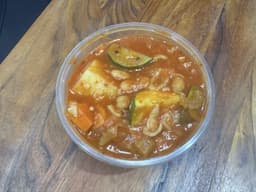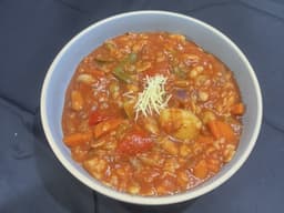 Crushed tomatoes (billabong), Water, Cannelini beans, Four bean mix, Tomato soup (Heinz), Potatoes, Raw Carrots Chopped, Zucchini, Purple onion, Celery, Macaroni pasta -Roma Gluten Free (Wheat), Red capsicum, Green capsicum, Crushed garlic, Salt, Mixed herbs, Pepper