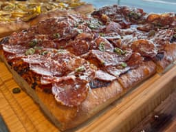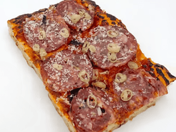 Tomato based sauce, that’s amore bocconcini, pickle chili, oregano, parmesan on a thick focaccia style crust.