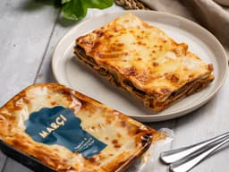This vegetarian lasagna won't leave you wanting for the Bolognaise version. The eggplant is roasted till golden brown and added to a spiced basil tomato sugo that we slowly cook over many hours. We make a rich Bechamel, abundant in ricotta, mozzarella and Grana Padano, we use fresh pasta sheets for our lasagna and wild Sicilian oregano.