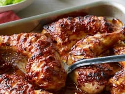 Leave chicken in the tray with glaze and heat in the oven on 160 degrees for 15-20minutes or until hot in the center.