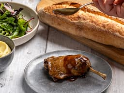 Duck Leg, spiced duck jus [Chicken stock, cabernet sauvignon red wine vinegar (Sulphites), Sugar, Orange peel, Cinnamon, Star anise], Duck fat, Rock salt, Shallots, Thyme, Rosemary, Garlic, Orange peel, Nutmeg