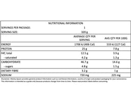 Remove the cardboard sleeve and peel back a corner of the plastic film. Microwave on HIGH for 2 minutes or until heated through. Stand for 30 seconds, then peel off the film and serve. Take extra care when you do this - it will be very hot and steamy!