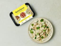 Basmati Rice, Chicken Drumsticks, Coconut Cream (Coconut Extract, Water, Vegetable Gum (Guar Gum)), Water, Carrot, Green Beans, Onion, Brown Sugar, Green Curry Paste (Green Chili, Lemongrass, Garlic, Galangal, Shrimp Paste, Kaffir Lime Peel, Coriander Seed, Pepper, Cumin, Turmeric) (Crustacean), Olive Oil, Fish Sauce, Coriander, Lime Juice, Garlic, Kaffir lime leaves