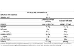 Remove the cardboard sleeve and peel back a corner of the plastic film. Microwave on HIGH for 2 minutes or until heated through. Stand for 30 seconds, then peel off the film and serve. Take extra care when you do this - it will be very hot and steamy!