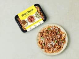 Spaghetti (Wheat), Beef Mince, Tomatoes, Tomato Paste, Carrot, Celery, Onion, Mushroom, Parmesan (Milk), Beef Stock (Iodised Salt, Sugar, Corn Starch, Beef Fat (Beef Fat, Antioxidant (307b), Food Acid (330)), Yeast Extract, Soy Sauce Powder (Wheat), Colour (150c), Hydrolysed Vegetable Protein (Wheat, Soy, Flavour, Onion Powder, Flavour Enhancer (635), Spice, Food Acid (330), Herb), Salt, Pepper, Black Pepper, Herb, Olive Oil, Oregano, Thyme Leaves