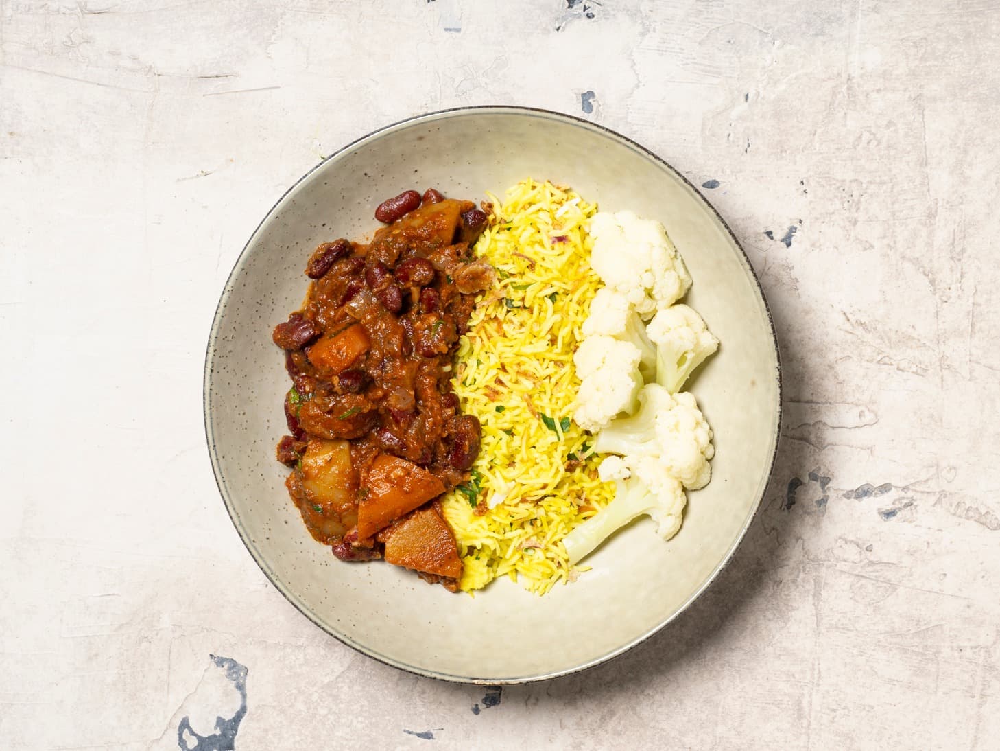 Inspired by the authentic home cooking of Khalida, one of our very first employees, this 100% plant-based classic is a vibrant and comforting meal. This vegan-friendly dish features tender red kidney beans (Lubya) simmered in a light, fragrant tomato sauce with perfectly roasted cauliflower florets. Served alongside fluffy white rice, it’s a nutritious, high-fiber meal that tastes just like the recipe Khalida shared from her family kitchen.