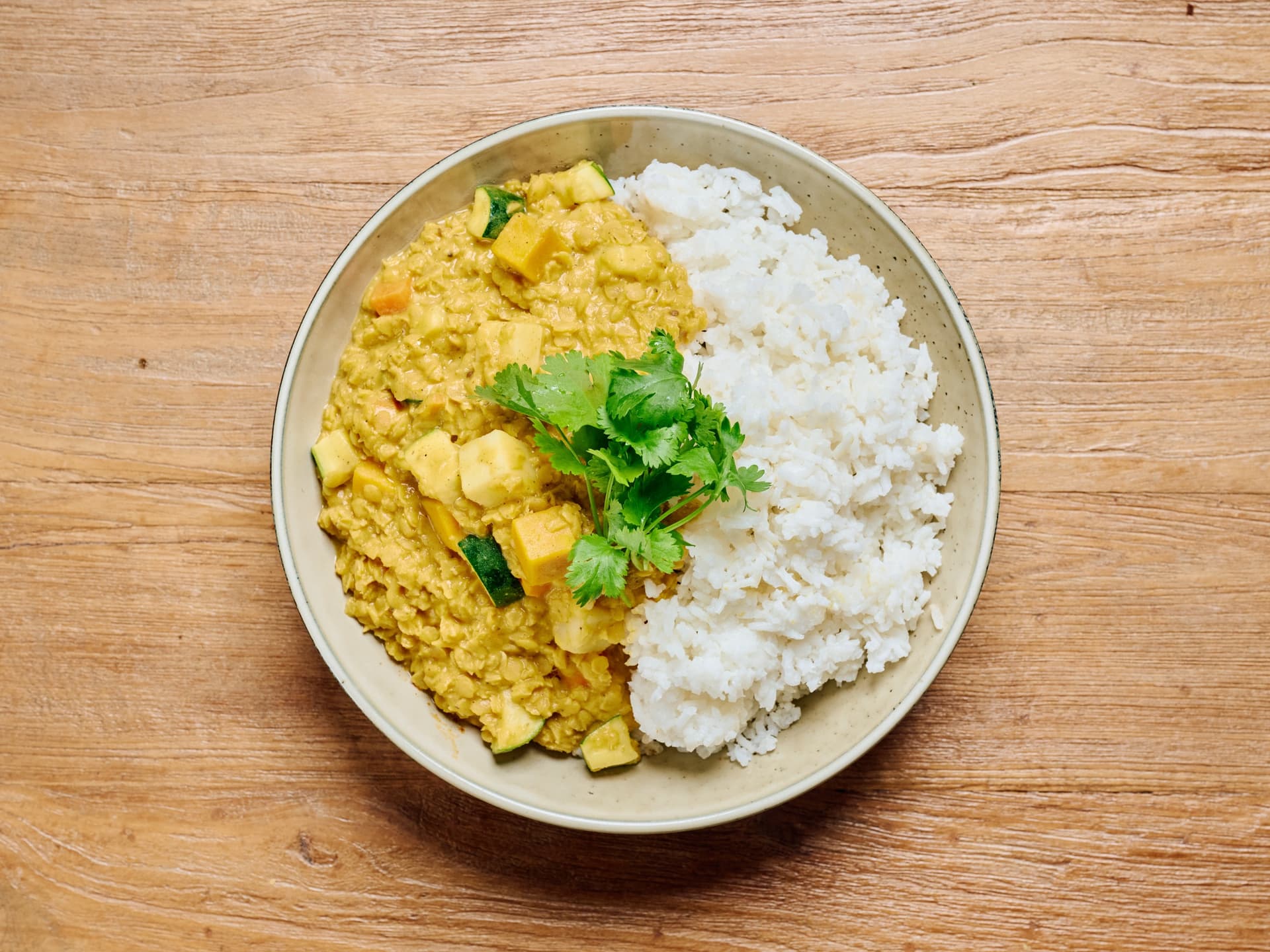 Our Malaysian Dahl Curry features tender lentils and chickpeas slow simmered in a fragrant, creamy coconut milk base. The curry is deeply spiced with coriander, ginger, turmeric and star anise achieving a perfect balance of earthy warmth and mild heat. Served alongside fluffy white rice and fresh, bright green Bok Choy, this dish is a complete, high fibre, and nutritious vegan meal. It's the ultimate easy dinner for a satisfying taste of authentic Asian cuisine.