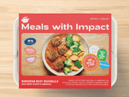 Our rich Moroccan Beef Meatballs are hand rolled from premium beef and seasoned with a balanced blend of aromatic spices like turmeric, cumin and coriander, then simmered in a savory tomato sauce. The meatballs are perfectly paired with tender, naturally sweet chunks of roasted sweet potato and healthy, vibrant broccoli florets