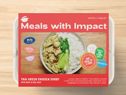 Coconut cream, Water, Eggplant, Onion (brown), Vegetable oil, Lemongrass, Fish sauce (V) (Soy), Lime juice, Garlic mince, Zucchini, Thai Green Curry Paste (Crustacean), Basmati rice, Ginger Crushed, Bok choy