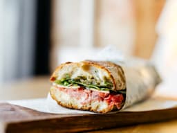 A variety of seasonal freshly made sandwiches and baguettes. Each piece is half a sandwich, we recommend 2-3 pieces per person.