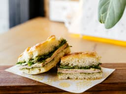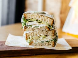 Poached chicken, avocado, miso aioli and spring onion dressing in fresh hand-cut sourdough.