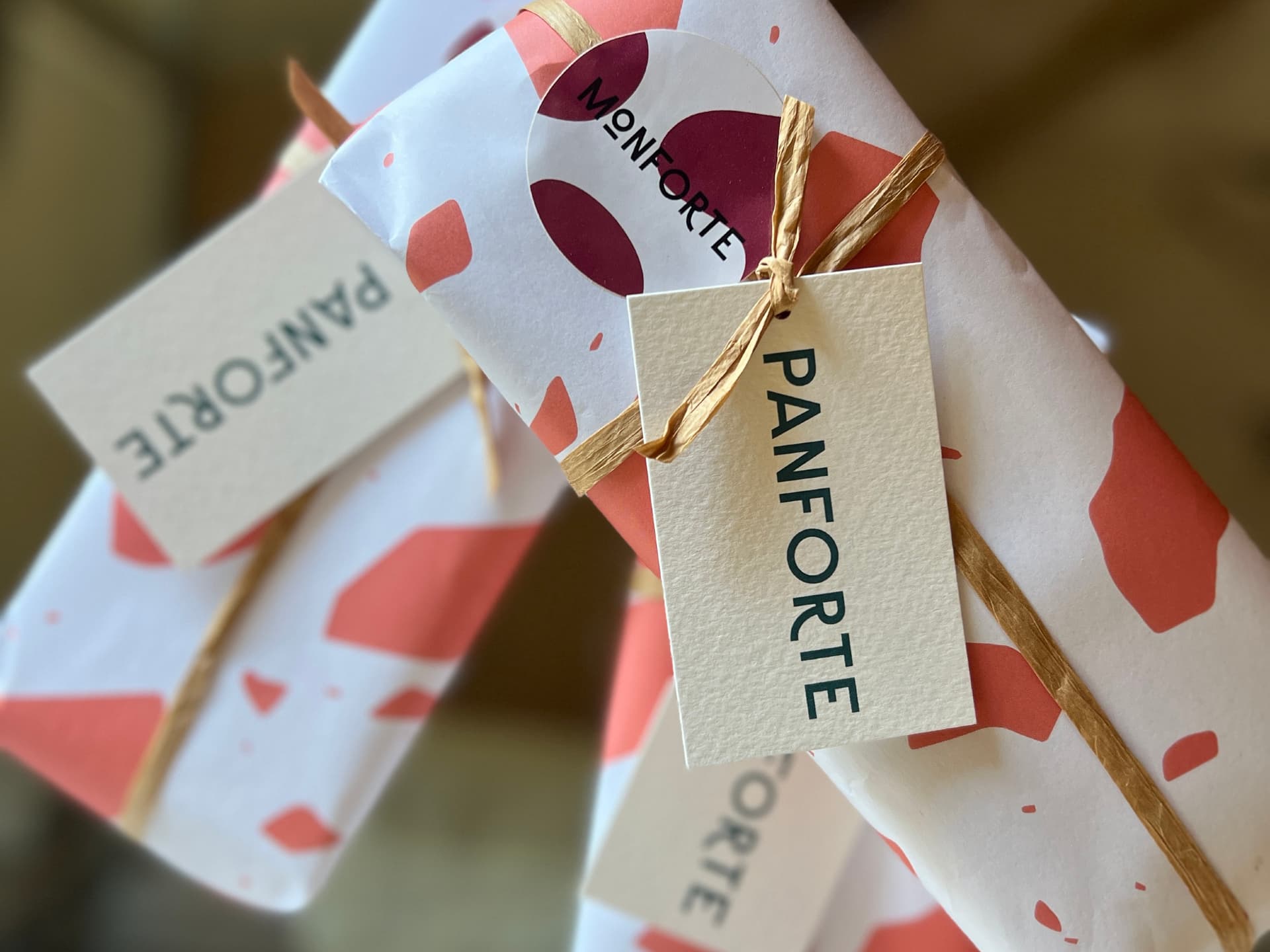 A classic dark and chewy Italian Panforte, ours are made with house-candied oranges, sour cherries, dried fig, 70% Dominican chocolate from Melbourne based chocolaterie Hunted & Gathered and bound with our our favourite Tasmanian leatherwood honey. They’re studded with whole roasted almonds and hazelnuts and gently spiced with freshly ground toasted cinnamon & pepper blend. Each Panforte comes wrapped in Monforte wrapping paper making a perfect gift and are available for pick up only from the bakery. Panfortes are 650g each / 21.5cm x 9cm and serve 6+ generously; as the name suggests, the cakes are forte! and a little goes a long way. Best stored at room temperature and eaten within four months. Allergens: wheat flour, tree nuts, honey Dairy & egg free