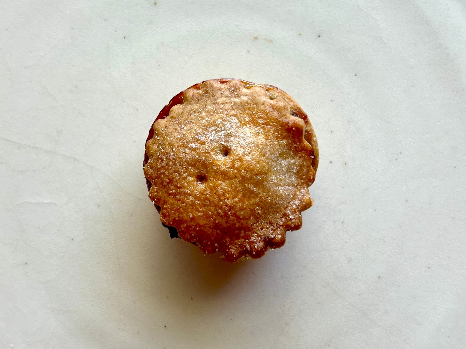 A pack of six of our signature fruit mince pies. Our pies are made up of organic vine fruit and house-candied citrus soaked in an apricot & peach shrub, whisky and cultured butter. Studded with prunes, apples, warming fresh ginger and our house spice blend, and encased in an ultra-thin, lightly flaky shortcrust. Best stored at room temperature in an airtight container and eaten within six days of purchase. Allergens: wheat flour, butter, egg Contains alcohol