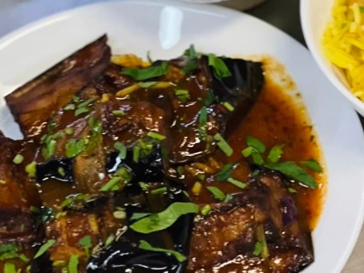 Water, Eggplant, Rice, Onion, Slivered almonds, Yoghurt (Milk), Olive oil, Parsley, Tomato paste, Pomegranate molasses, Coriander, Garlic, Salt, Black pepper, Cumin, Chilli powder