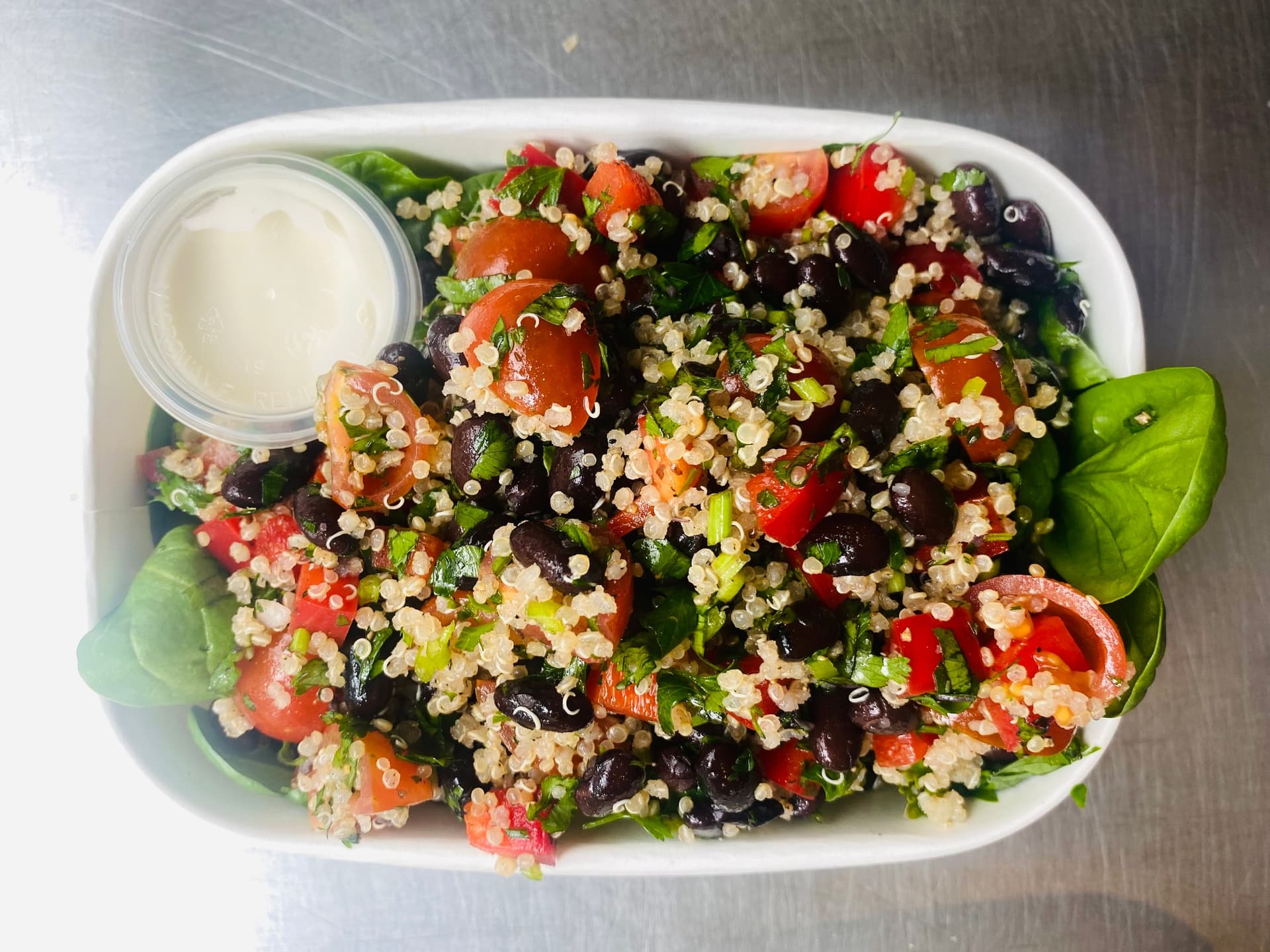 Nutty quinoa and protein-rich black beans tossed with fresh herbs and drizzled with zesty citrus dressing.