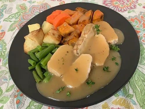 Looking for a Roast Dinner just like mum used to make? Try our new Roast Chicken Dinner! Juicy roasted chicken breast, served with golden potatoes, sweet potato, carrots and beans, topped off with a rich thyme infused chicken gravy. Perfect any time of the year. Packet size: 370g