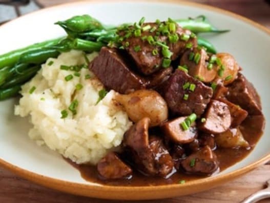 Don't feel like cooking? Look no further! We've combined our traditional beef bourguignon with mash potato and vegetables ready for you to heat and serve for dinner! Packet size: 340g