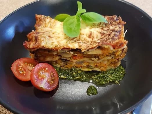 We have combined several of your favourite roasted vegetables along with My Dish freshly made Pesto, layered them between freshly made egg pasta sheets and then finished with a creamy bechamel sauce.